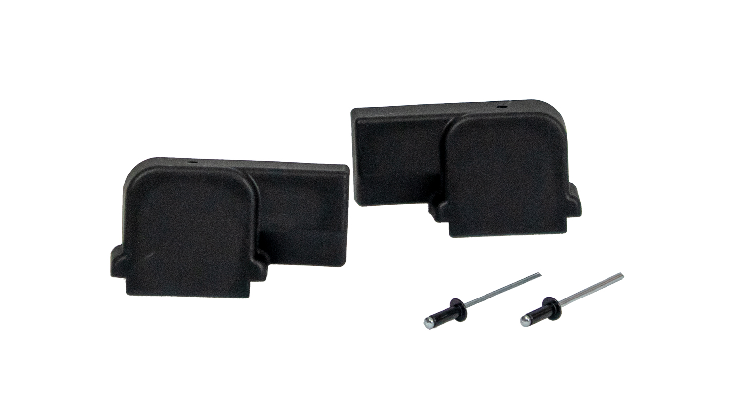 Yes, the package includes pop rivets for both left and right end caps to ensure a secure fit.